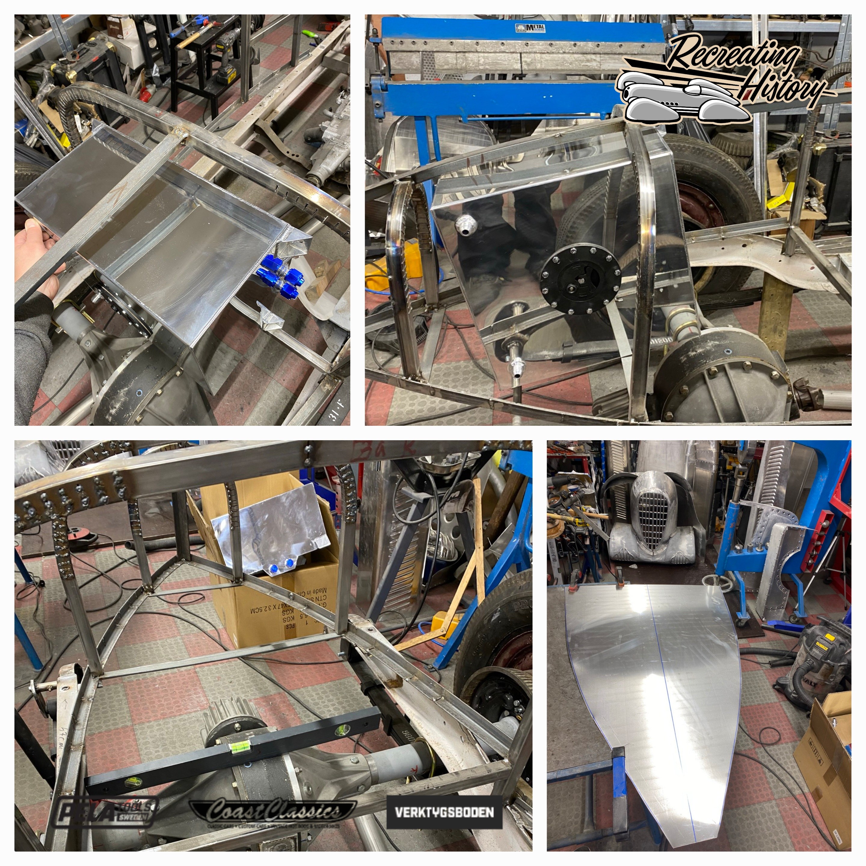 With the chassis taking shape, the next step is crafting the hood and radiator shell—key elements defining the Glennster TS-12’s striking silhouette. Precision and heritage guide every detail as the build progresses. Stay tuned!
